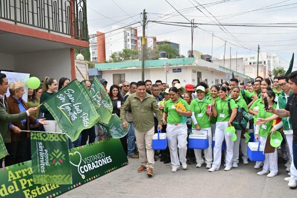 El Gobernador del Estado Ricardo Gallardo Cardona, puso en marcha el programa de Salud “Visitando Corazones”, con el que 100 enfermeros y enfermeras acudirán a los hogares potosinos para brindar atención sin límites, gratuita, detección de enfermedades y seguimiento a la salud de las familias en diferentes colonias de la capital potosina.